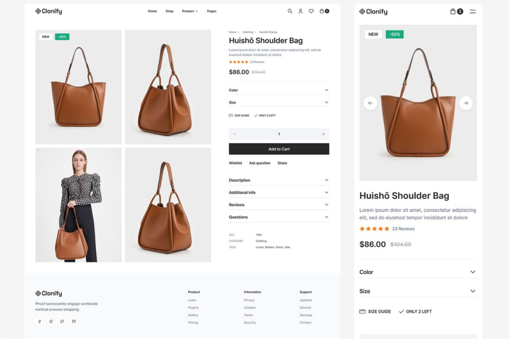 Clear hierarchy, strong CTAs, and optimized product pages.